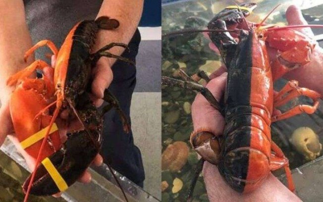 Uma em 50 milhões!Raríssima lagosta mutante bicolor é encontrada nos EUA