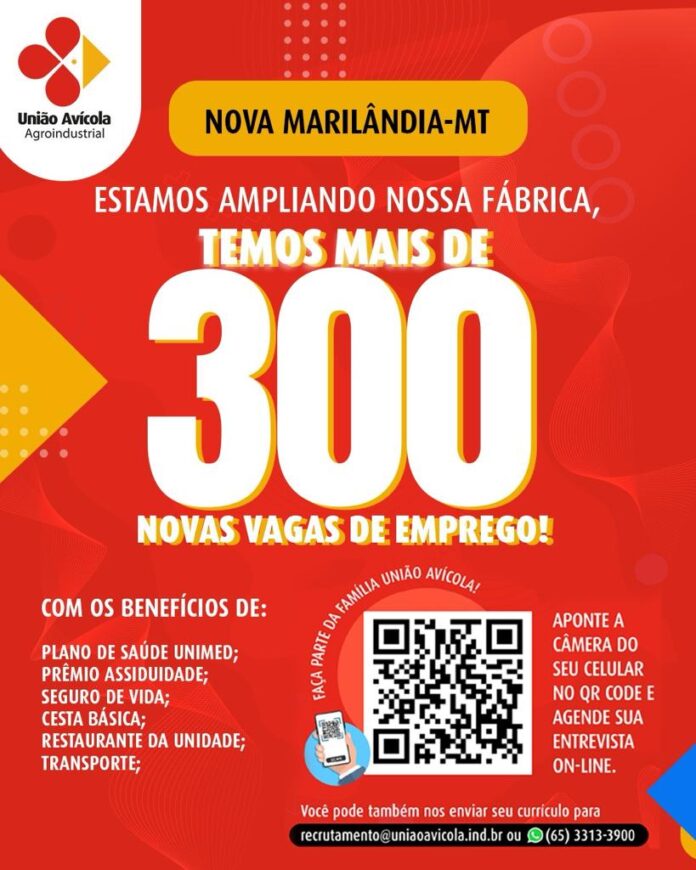 Para mais informações, os interessados devem enviar Currículo para o e-mail: recrutamento@uniaoavicola.ind.br
