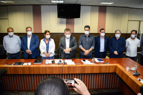 O prefeito de Cuiabá, Emanuel Pinheiro, participou na tarde desta terça-feira (24) de reunião com o governador Mauro Mendes, no Palácio Paiaguás, para discutir as ações de combate à disseminação ao novo Coronavírus. A prefeita da segunda maior cidade do Estado, Lucimar Sacre de Campos também apresentou ações e estratégias durante o encontro. Para o chefe do executivo municipal, o primeiro passo para combater a pandemia é a união de esforços, o que irá refletir no fomento a rede protetiva da população.