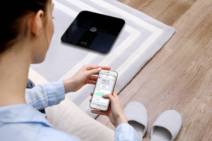 1/8 A balança BodySense, da Mobimax, grava e organiza dados de saúde, que podem ser consultados diretamente no celula (Divulgação/Divulgação)