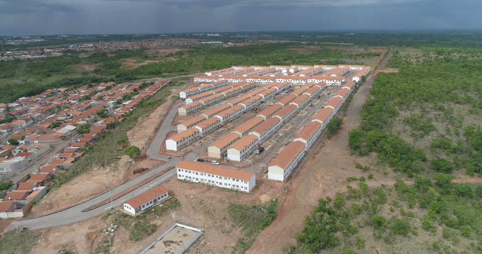 O RESIDENCIAL COLINAS DOURADAS QUE CHEGOU A SER INVADIDO ESTÁ COM SUAS OBRAS PRATICAMENTE CONCLUÍDAS. PROCESSO DE SELEÇÃO SEGUE LEGISLAÇÕES FEDERAL, ESTADUAL E MUNICIPAL.