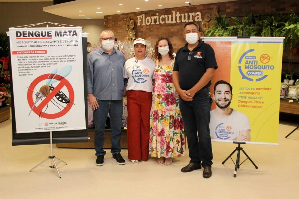 Mesmo estando com números abaixo de outras cidades do mesmo porte no Brasil e o Ministério da Saúde priorizando outros Estados neste momento de alto volume de contaminação e casos principalmente de dengue, ficando Mato Grosso para um segundo momento, a Prefeitura Municipal de Várzea Grande através da Secretaria de Saúde entre outras pastas da gestão municipal que também fundamentais no combate a doenças endêmicas, se uniu a Rede de Supermercados Comper que tem diversas unidades na cidade e em todas as regiões, na campanha “Agente Anti Mosquito”.