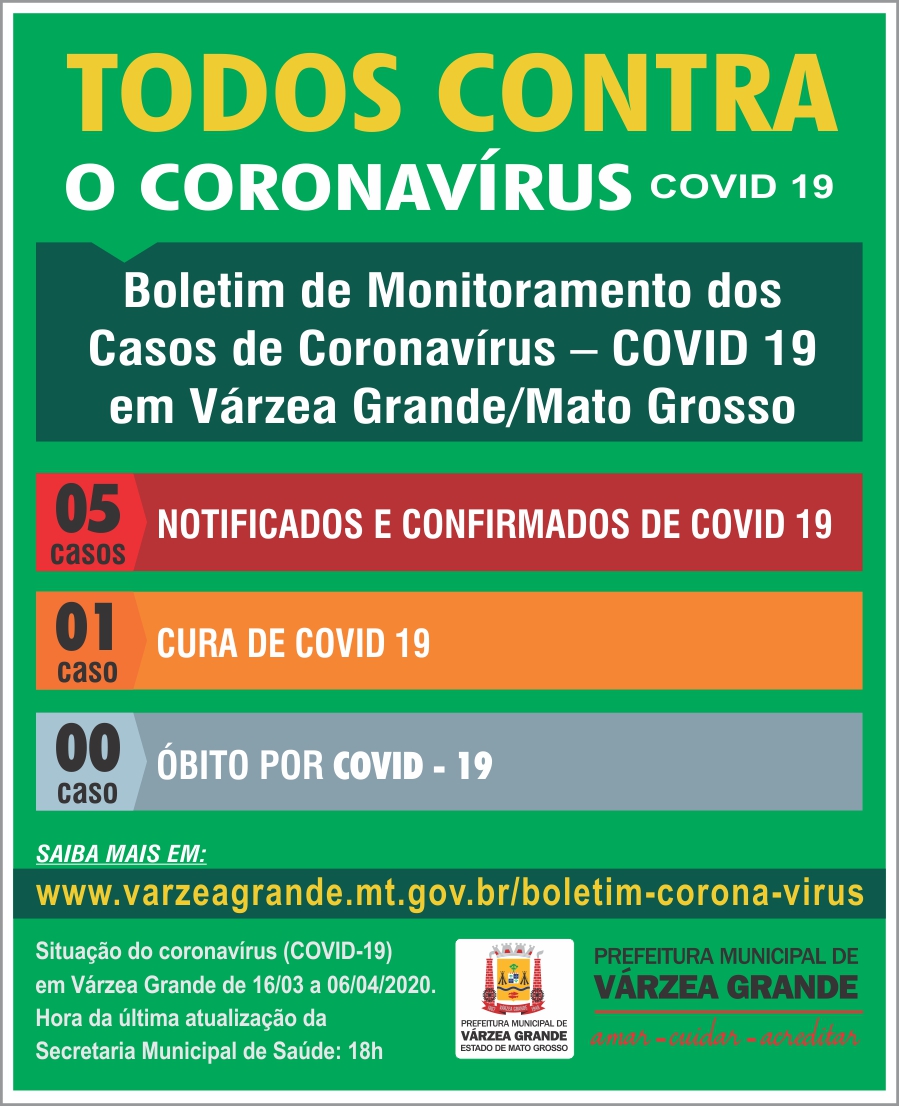 “Este número se soma a outro importante, o fato de não termos óbitos consignados, e uma demora maior para a constatação de novos casos suspeitos, ou seja, o distanciamento social tem atingido seu maior objetivo, evitar a propagação da doença e uma contaminação ainda maior de pessoas”, disse o secretário de Saúde de Várzea Grande, Diógenes Marcondes, defendendo as regras de isolamento social como fundamentais, apesar de compreender a necessidade de alguns serviços e setores terem a necessidade de voltar a funcionar para fazer frente a questão econômica.