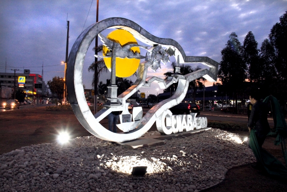 A peça tem as mesmas dimensões de sua irmã, instalada na rotatória do Terminal Rodoviário de Cuiabá