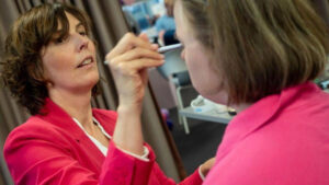 “É isso mesmo”, ri Camilla Kvalheim, editora-chefe da estação – e também, atualmente, maquiadora. “Mas no estúdio, com luzes pesadas, você parece mais pálida.”